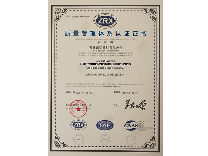 質(zhì)量管理體系認(rèn)證證書(shū)